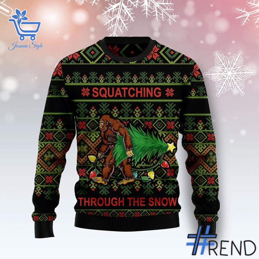 Bigfoot Squatching Through The Snow Christmas Sweater