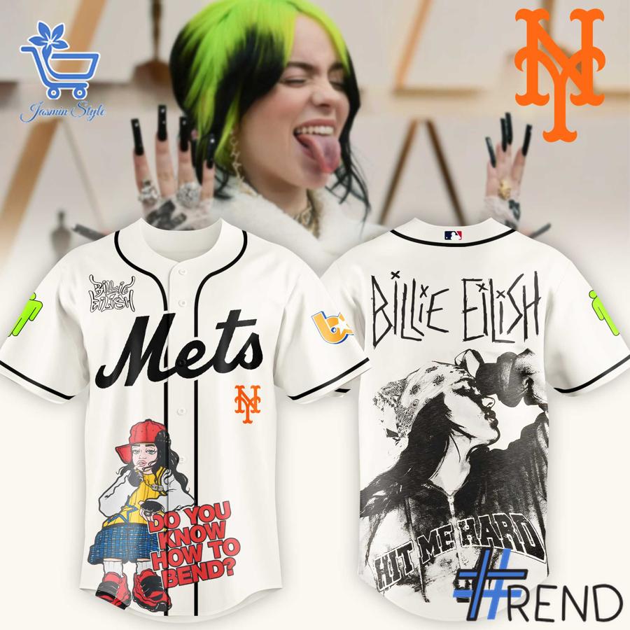 Channel the electric fusion of pop rebellion and baseball royalty with the Billie Eilish New York Mets 2025 Tour Jersey, a limited-edition mashup that’s tailor-made for superfans blending Billie Eilish merch with New York Mets apparel. Timed perfectly for her “Hit Me Hard and Soft: The Tour” stop at UBS Arena on October 25-26, 2025—just minutes from Citi Field—this white button-up jersey screams Queens crossover cool, nodding to the Mets’ playoff push while echoing Eilish’s third album vibes. Ideal for MLB fan gear collectors and Billie Eilish tour outfits, it’s the SEO darling for searches like “Billie Eilish Mets jersey” or “2025 concert streetwear,” turning heads from the diamond to the stage.