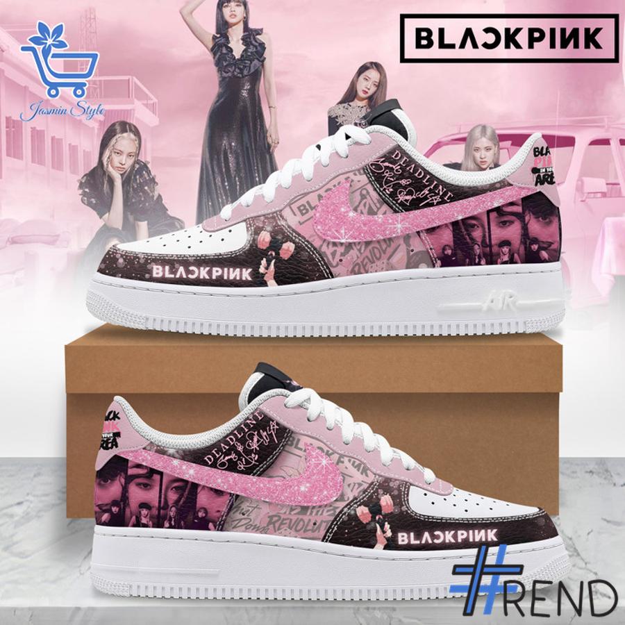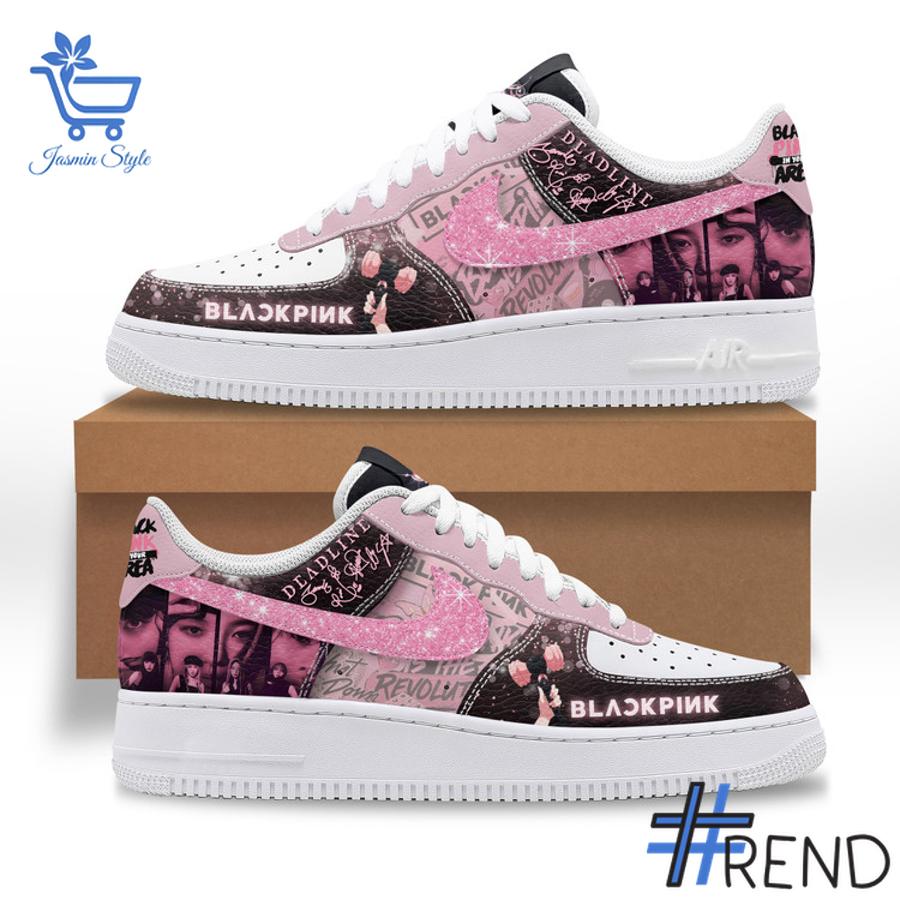 Designed on the iconic Nike Air Force 1 silhouette, these custom Blackpink-themed shoes feature a captivating blend of edgy aesthetics and feminine charm, reflecting the group’s signature “black and pink” concept. The crisp white leather toe box provides a clean contrast, while the midfoot and heel panels explode with dynamic graphics. You’ll find striking black-and-pink imagery of the members, bold “BLACKPINK” branding in their distinctive font, and evocative text that captures their powerful message, including “DEADLINE” and phrases about revolution. The classic Nike swoosh is given a dazzling makeover, drenched in shimmering pink glitter, adding an extra layer of pop star glam. These intricate details make these limited edition Blackpink Air Force 1s instantly recognizable and a true testament to your fandom.