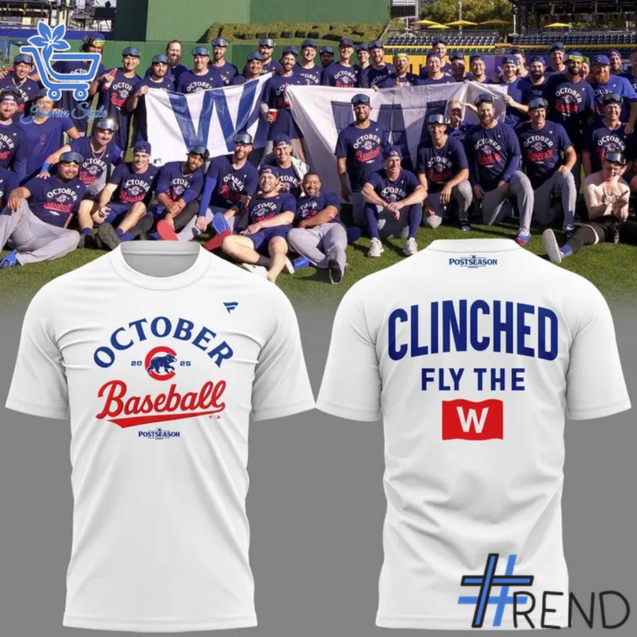 The shirt boasts a powerful, unique design that captures the anticipation of the playoffs. The front proudly displays “October Baseball 2025 Postseason” in a dynamic graphic. The back delivers an emphatic message: “CLINCHED FLY THE W” alongside the unmistakable ‘W’ flag emblem, symbolizing victory at Wrigley Field and cementing your status as a dedicated supporter. This officially licensed style of Chicago Cubs apparel is instantly recognizable and resonates deeply with the spirit of the Cubs community.