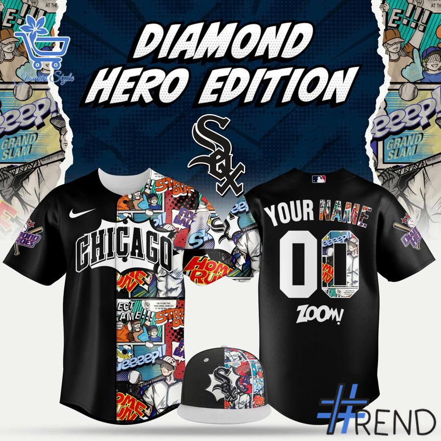 Step onto the field—or into the stands—in unmatched style with the Chicago White Sox 2025 MLB Diamond Hero Jersey. Designed for fans who want to celebrate their team with a modern, eye-catching twist, this exclusive jersey blends classic White Sox pride with a vibrant, comic-inspired “Diamond Hero” design. Perfect for game day, streetwear fashion, or adding to your collection, it’s a statement piece that commands attention.