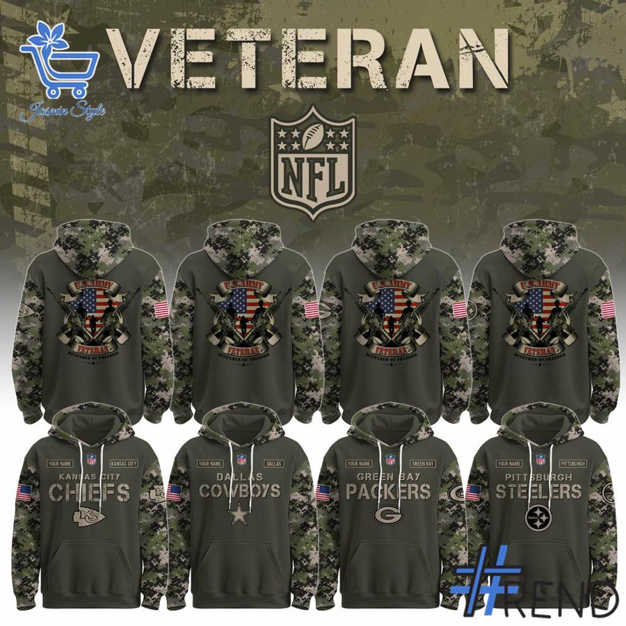 Honor the heroes who served and the teams that inspire with the Choose Your NFL Team x US Army Veteran Hoodie – a customizable salute to military pride and gridiron glory that’s sweeping fan shops this Salute to Service season. Whether you’re a Chiefs die-hard, Cowboys loyalist, Packers cheesehead, or Steelers nation member, this hoodie lets you pick your squad and wear your gratitude loud, blending NFL fandom with veteran tribute in one unbeatable package.