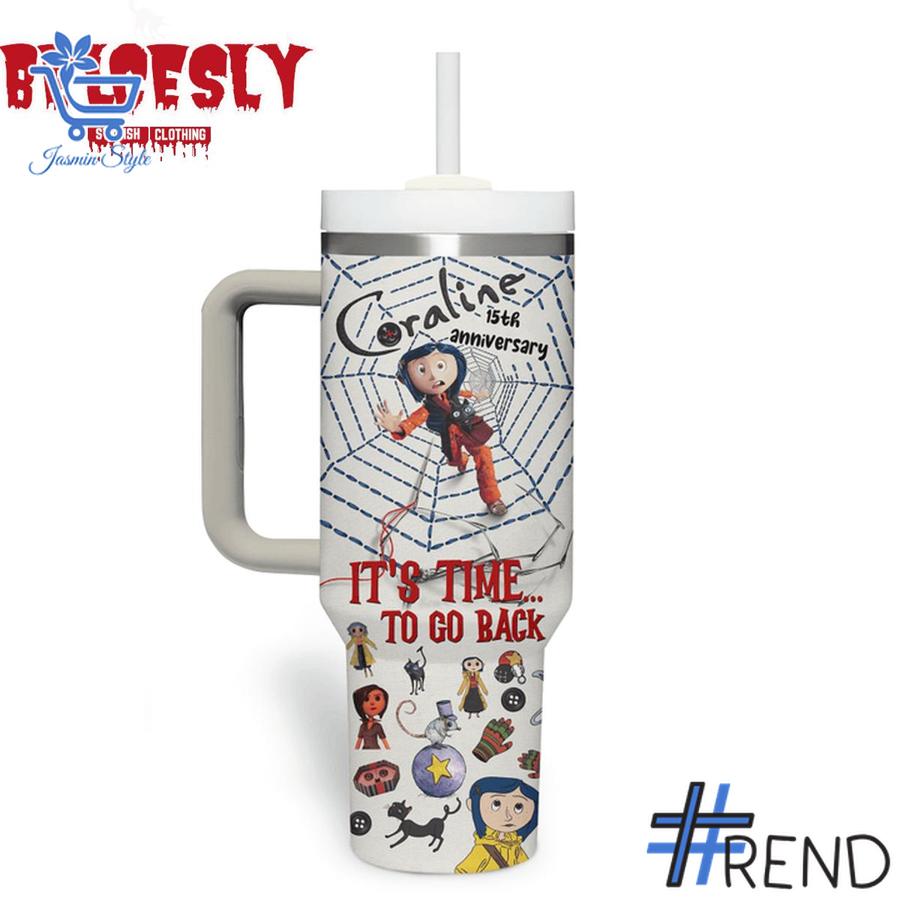 Coraline 15th Anniversary 40oz Tumbler, a must-have collector’s item that celebrates the beloved animated masterpiece.