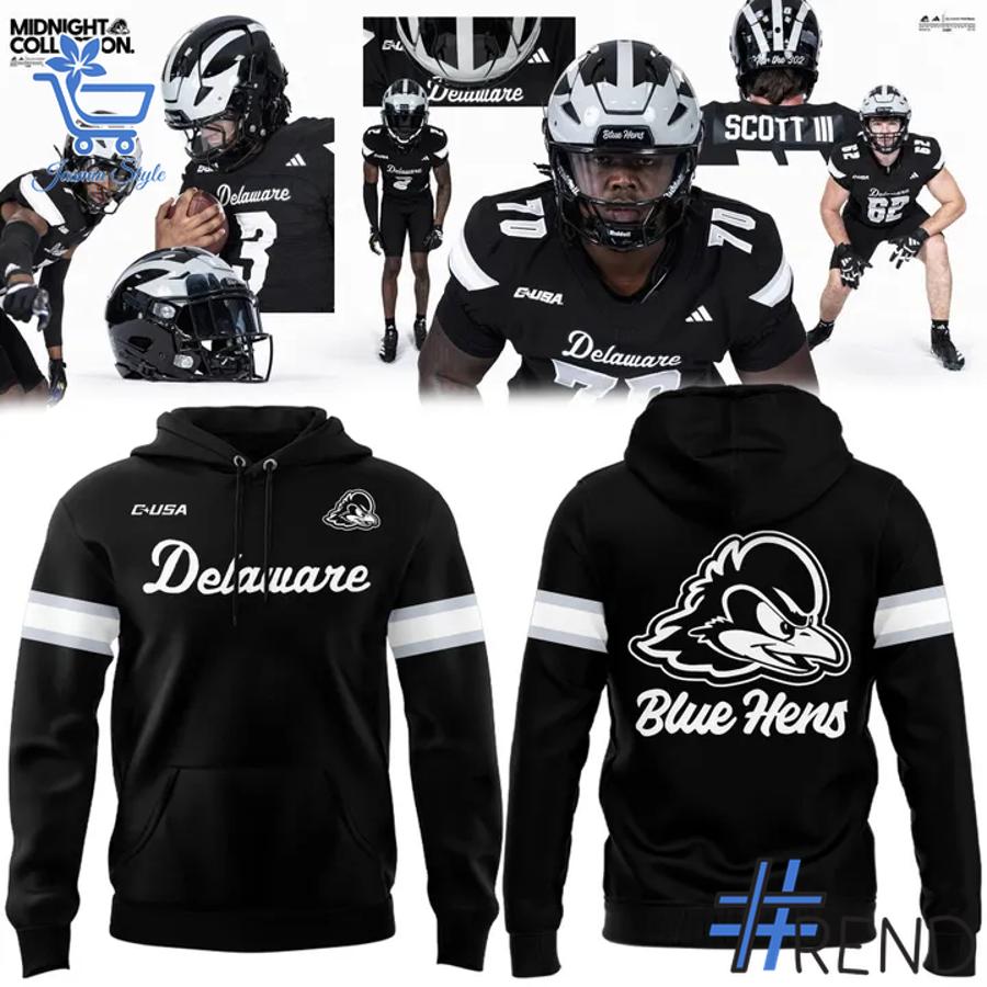 Step into the season with unbeatable style and school pride in the Delaware Blue Hens 2025 Midnight Delaware Hoodie. Inspired by the team’s cutting-edge “Midnight Delaware” uniforms, this hoodie captures the perfect balance of modern athletic design and classic Blue Hens spirit. Whether you’re cheering under the stadium lights or repping your team around campus, this limited-edition piece lets your pride shine in striking black and white.