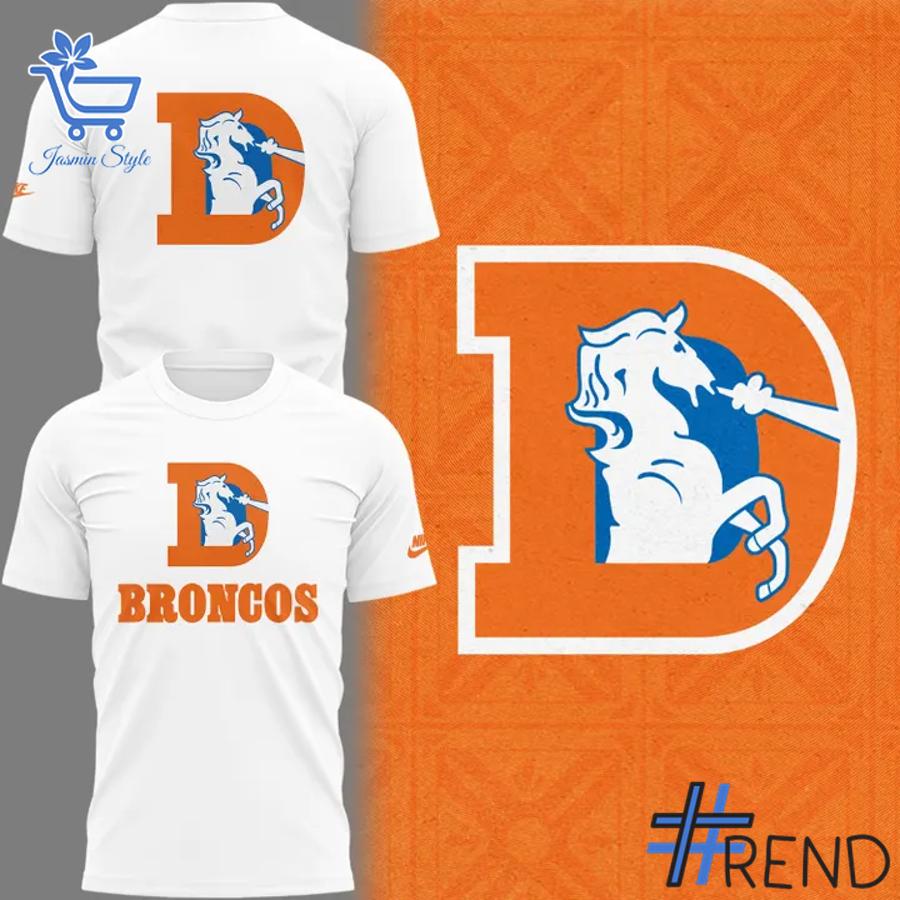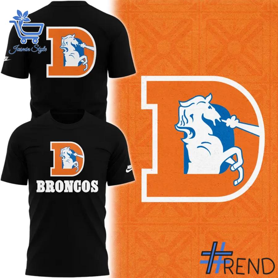 Designed in the team’s signature bright orange, this tee instantly stands out with its classic “D” logo featuring the rearing white horse — an iconic emblem that recalls the grit, passion, and pride of Denver’s golden era. Just below, the word “BRONCOS” is printed in crisp white block lettering, giving the shirt a clean, balanced look that’s both nostalgic and effortlessly stylish. Subtle geometric patterns across the fabric add a layer of texture and visual depth, making the design pop while maintaining a sleek, athletic vibe.