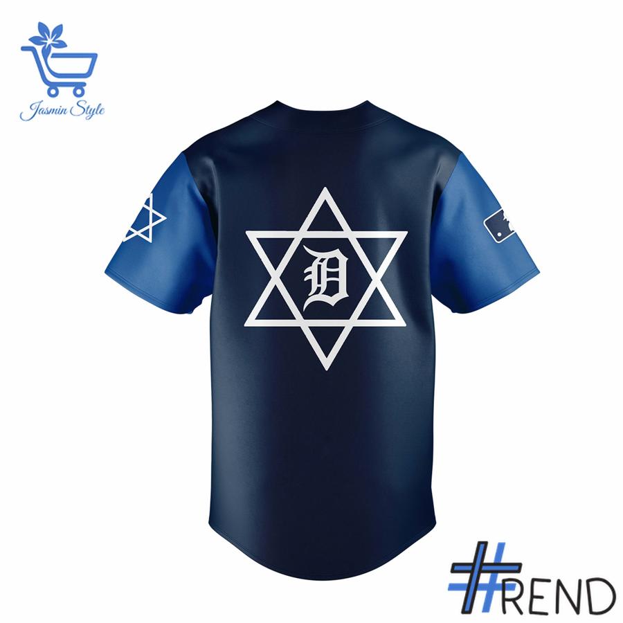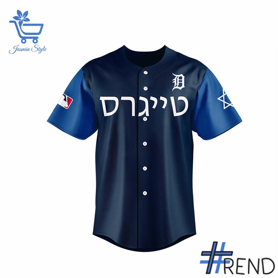 Crafted with meticulous attention to detail, this navy blue jersey features a stunning design that honors both the Detroit Tigers and Jewish heritage. The front proudly displays “טיגרס” (Tigers in Hebrew), showcasing the team’s name in elegant Hebrew script. The iconic Old English ‘D’ sits above, seamlessly blending Detroit’s baseball legacy with Jewish cultural elements.
