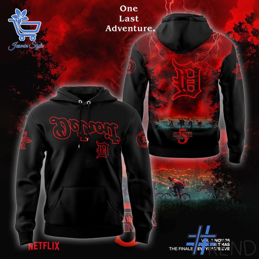 Prepare for “One Last Adventure” with the exclusive Detroit Tigers Stranger Things 2025 Hoodie! This isn’t just an ordinary hoodie; it’s a thrilling blend of Detroit Tigers fandom and the eerie, captivating world of Netflix’s Stranger Things. Perfect for fans of both the Detroit Tigers and the hit series, this limited-edition Stranger Things hoodie is a must-have piece of Tigers merchandise that celebrates the highly anticipated finale. Whether you’re at Comerica Park or binge-watching Stranger Things 5, this Detroit Tigers fan apparel will showcase your unique style.