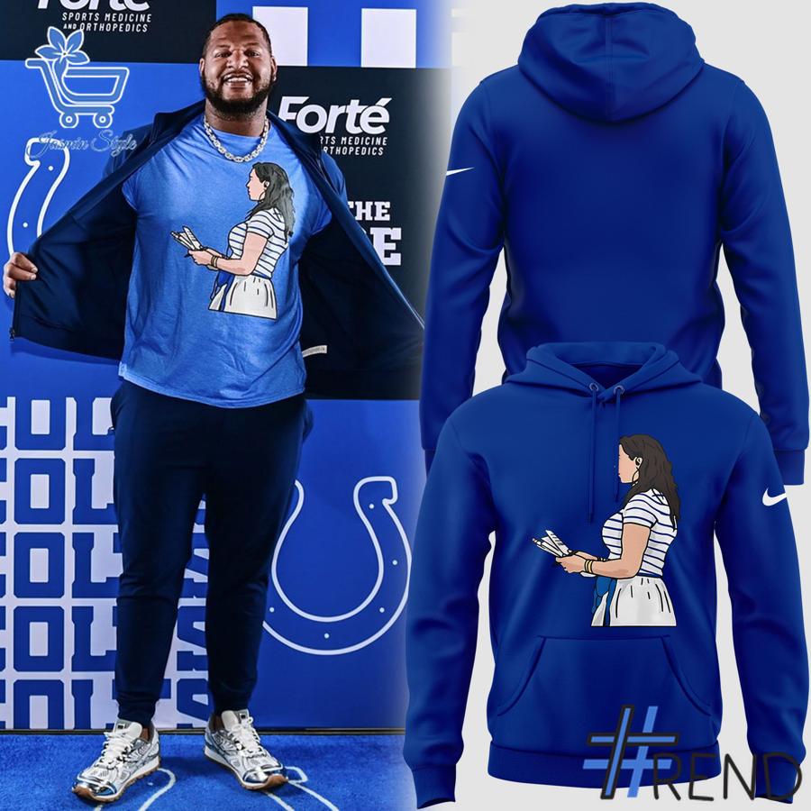 Crafted in a rich, vibrant royal blue—the signature color Colts fans love—this T-shirt stands out without even trying. On the front, a clean, modern illustration features a woman dressed in a classic striped top holding play sheets, capturing the poised focus and dedication of game strategy. The design is crisp, detailed, and screen-printed to ensure long-lasting wear without fading. The back of the tee remains minimal and solid blue, giving it a sleek, versatile aesthetic you can easily pair with jeans, joggers, or shorts.
