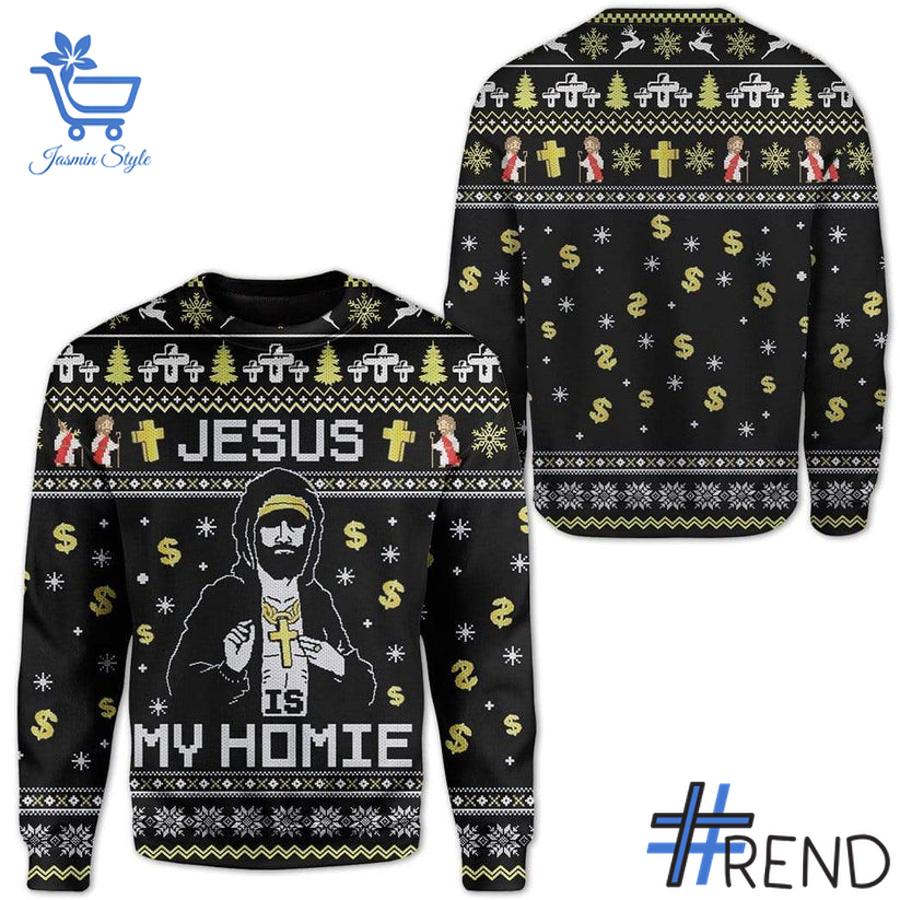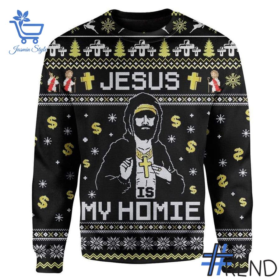 Blend faith with festive flair in the “Jesus Is My Homie” Christmas Sweater, a bold twist on traditional holiday knitwear that combines reverent imagery with contemporary style. This unique sweater offers a modern take on religious-themed holiday wear, perfect for those who want to express their faith with a touch of urban charm.
