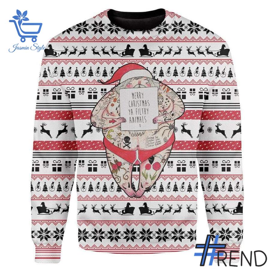 About the Merry Christmas ya filthy animal Christmas Sweater