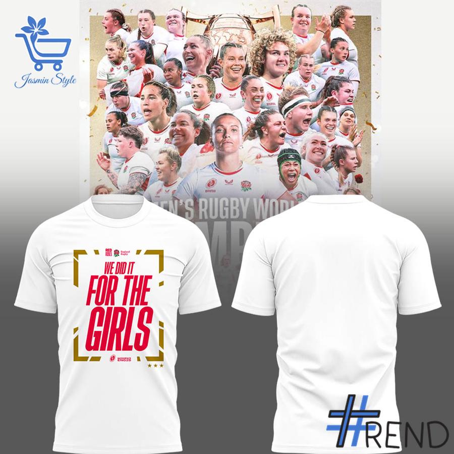 Commemorate England’s historic Rugby World Cup triumph with this powerful “We Did It For The Girls” championship t-shirt. This official merchandise captures the spirit and determination that led the Red Roses to their monumental victory in 2025.