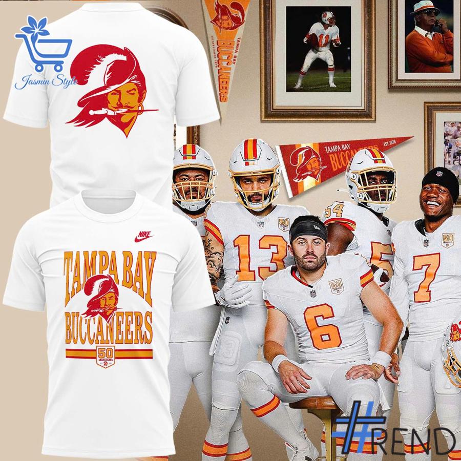 Tampa Bay Buccaneers 50th Season Essential T-Shirt! This is more than just fan apparel; it’s a piece of history, allowing you to proudly display your allegiance to the Buccaneers as they embark on their milestone 50th season. Perfect for game days, casual wear, or showing off your team spirit, this t-shirt is a must-have for every true Bucs fan.