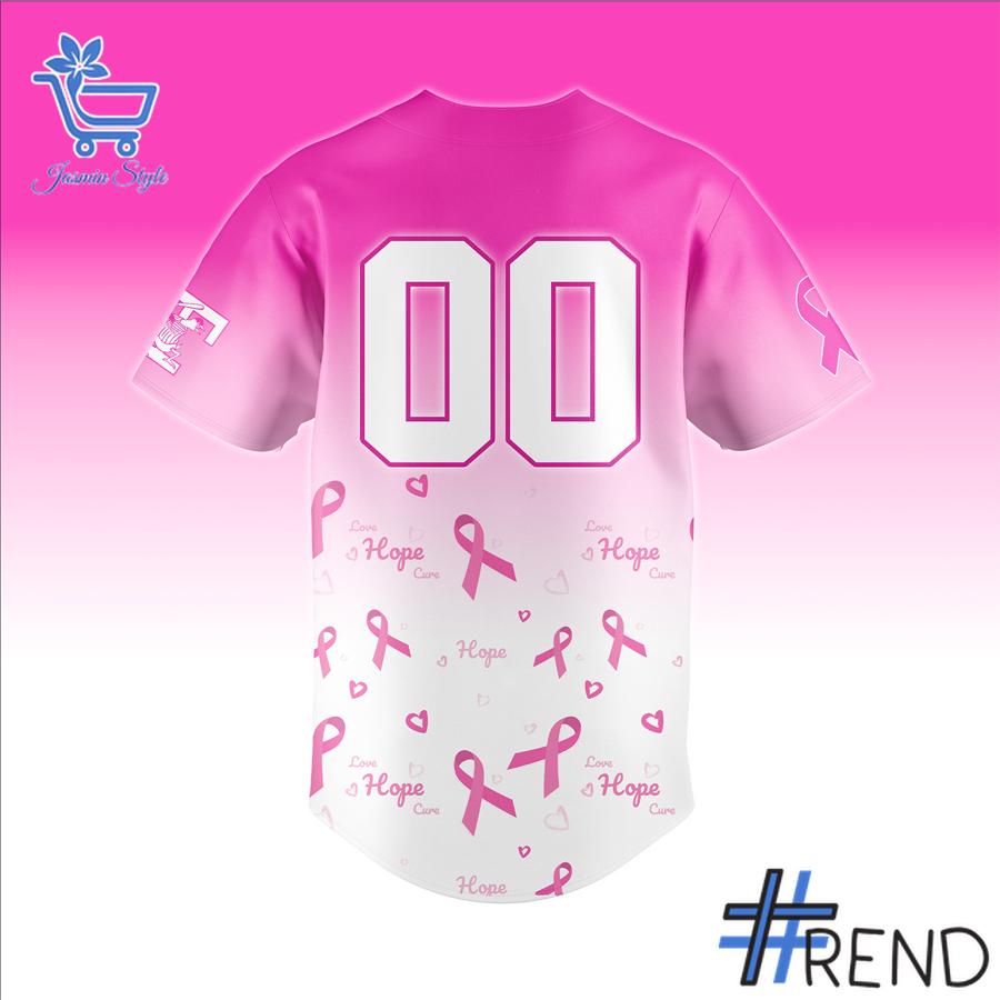 But what truly sets this jersey apart is its all-over pattern of pink awareness ribbons, delicate hearts, and inspiring words like “Hope,” “Love,” and “Cure” — thoughtfully arranged to wrap the lower half in a message that’s as stylish as it is supportive. Pink ribbon patches and sleeve logos add to the uniform’s symbolic strength, making it more than just a jersey — it’s a statement.