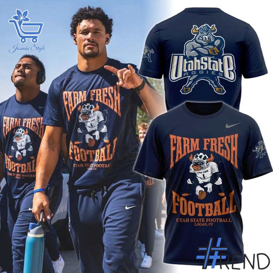 Elevate your game-day wardrobe and show your unwavering loyalty with the official Utah State Farm Fresh Football Shirt. This isn’t just a shirt; it’s a statement of Aggie pride and a must-have piece of Utah State Aggies apparel for any dedicated fan. Designed with a striking navy blue base and vibrant orange and white accents, this T-shirt instantly captures attention, making you stand out whether you’re in the stadium, at a tailgate, or just out on the town.